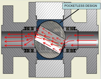 - The cavity between ball and body is designed with Pocketless design to minimize cavity size. - Reduced problems such as sticking, inoperability, and build up caused by ball valve cavity. - Prevents internal fluid from directly damaging the valve body during valve open / close operation. - Fluid infiltrated into the valve body flows out again during valve open / close operation Effect : Prevents irreparable damage. Prevents sticking of valve action. Increased valve life. ` |